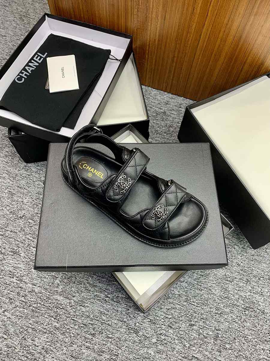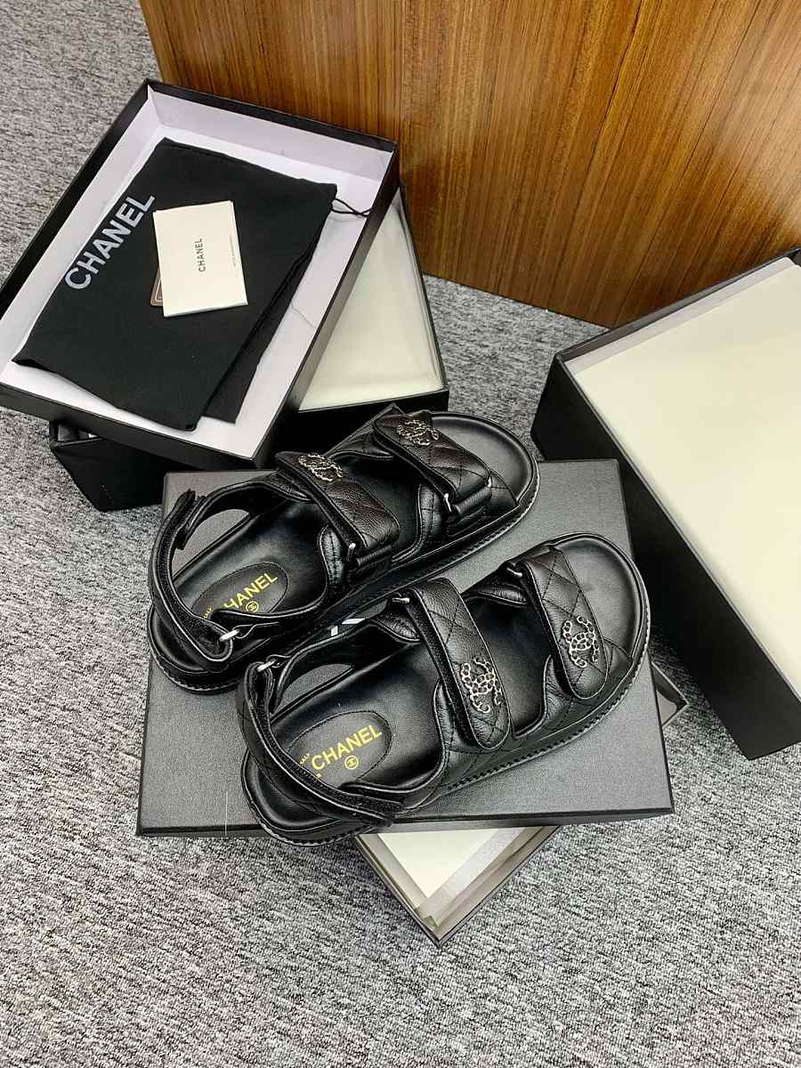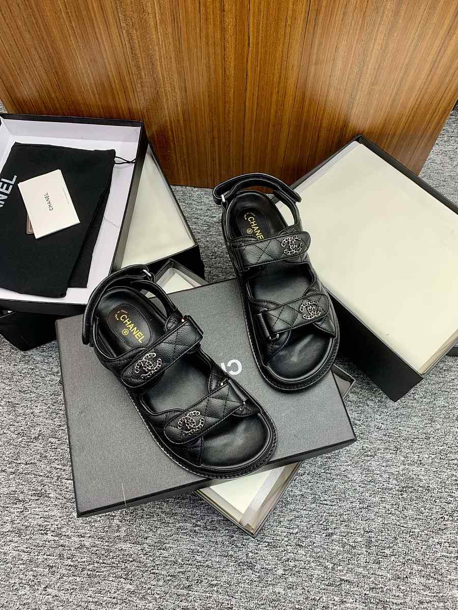 Chanel CC Quilted Dad Sandals in Black (Silver Hardware)
