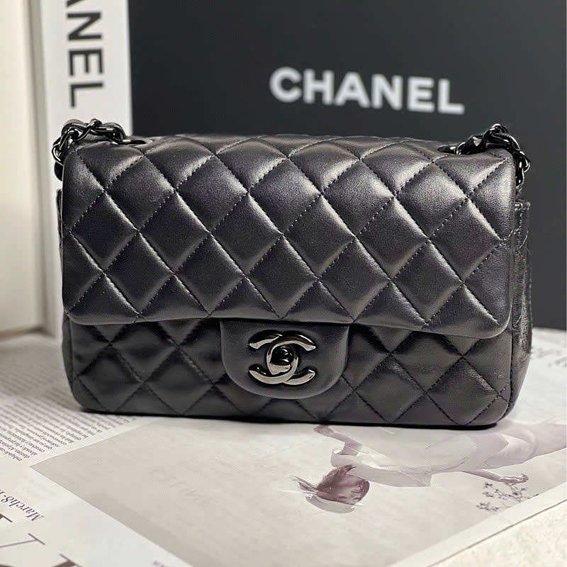 Chanel Flap Iridescent Lambskin Black Size 25x15x7cm
