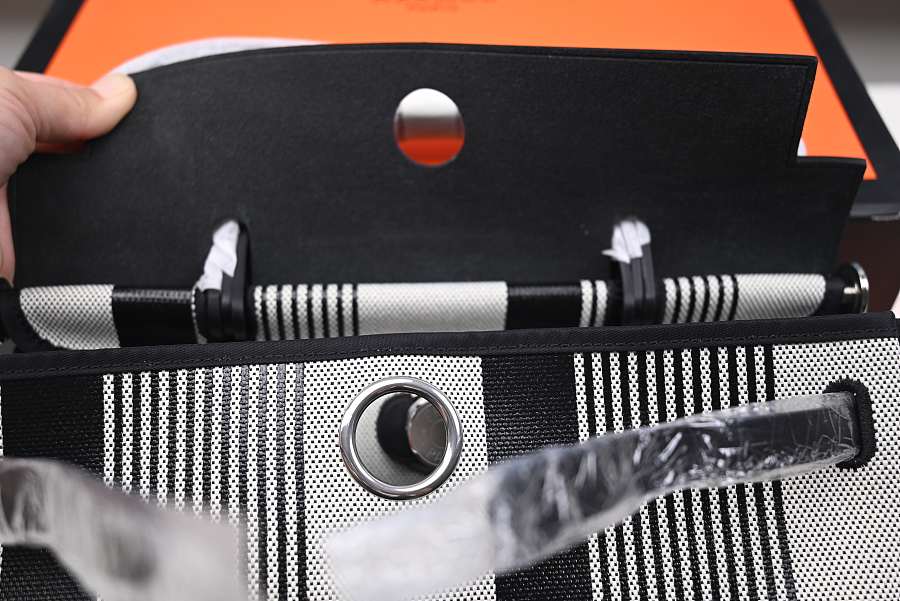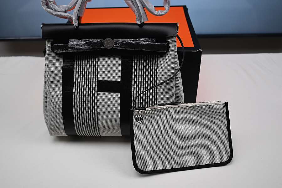 Hermes Grey Black Canvas Herbag Zip 39 Tote Bag 39x13x35CM