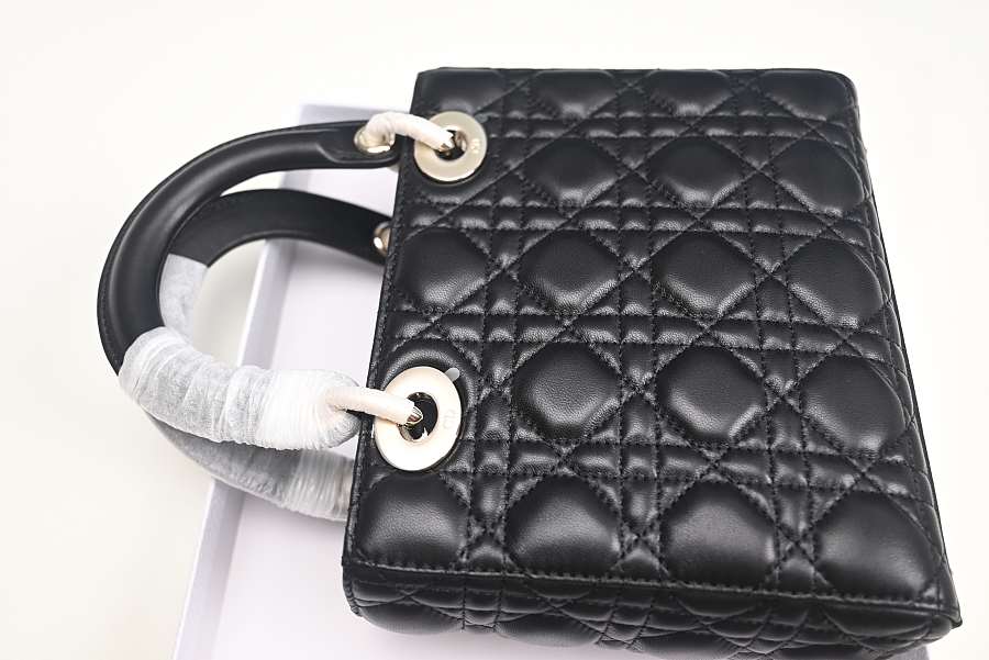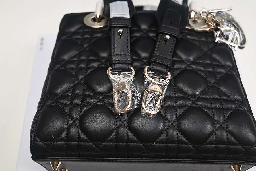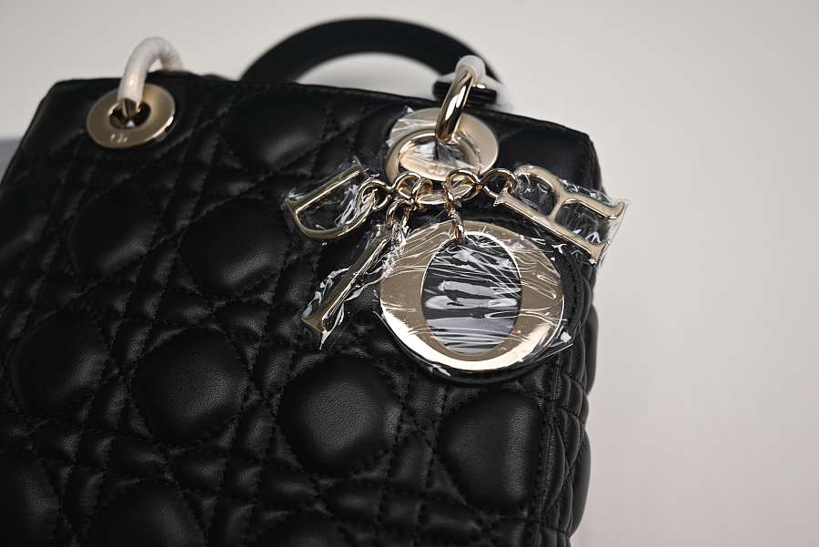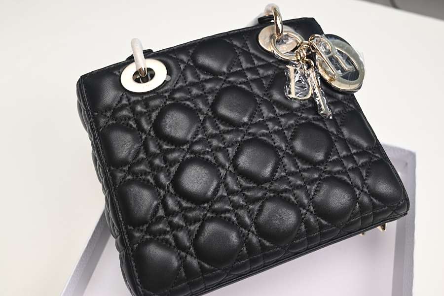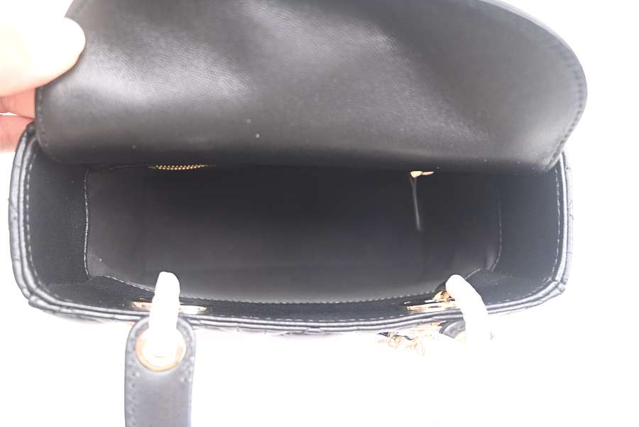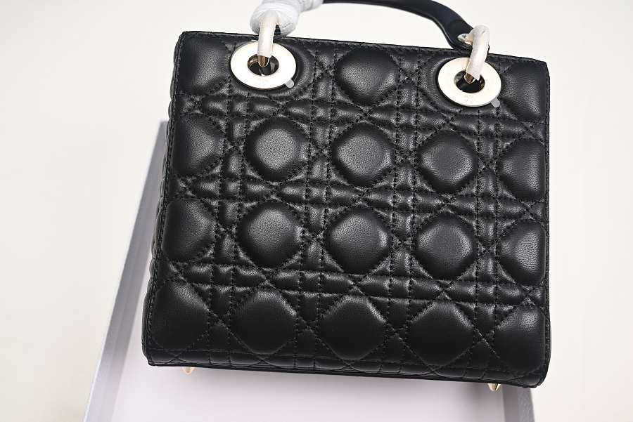 Dior Lady Mini Bag Metallic Leather Black 15x18x9cm