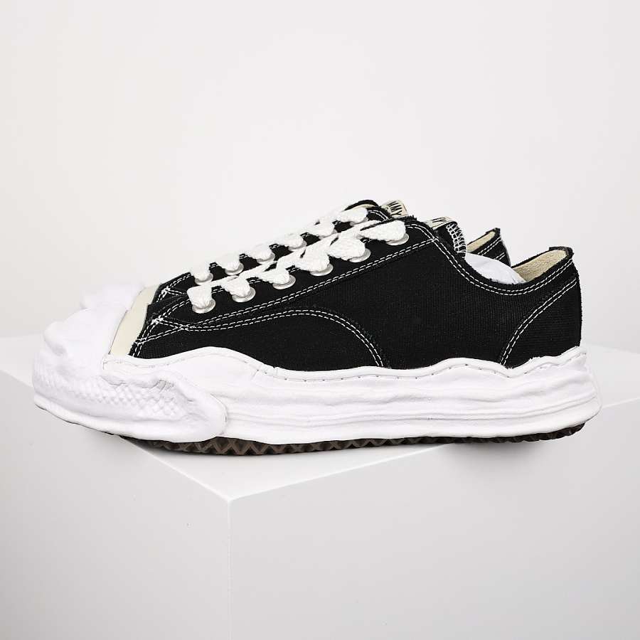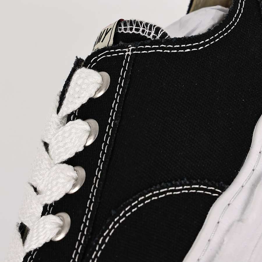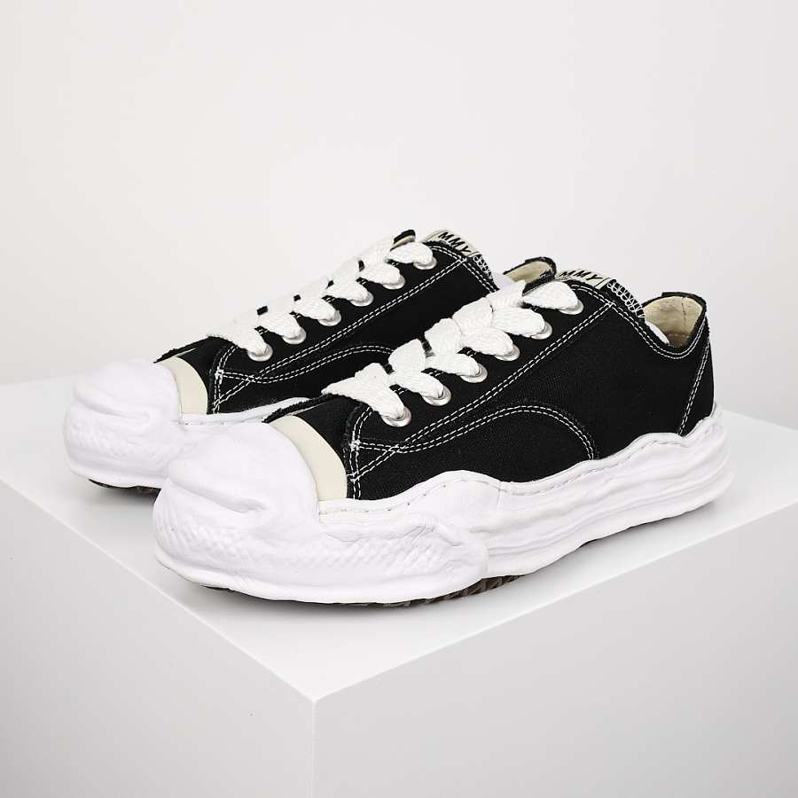 There Maison Mihara Yasuhiro Hank OG Sole Canvas Low is characterized by its making in black canvas. True to the universe of the Japanese designer, the sole OG, In rubber, unstructured, white provides comfort, adhesion and optimal durability. A embroidered logo and raw finishes, voluntarily irregular, accentuate the creative spirit and the signature of the brand.