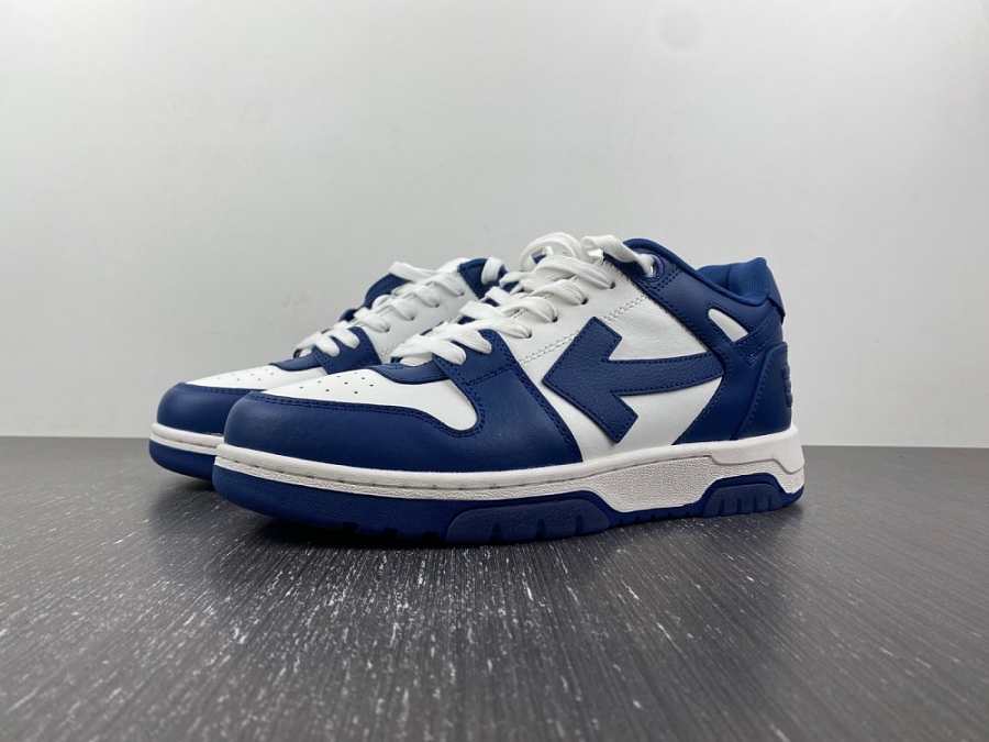 OFF-WHITE Out Of Office OOO Low Tops White Navy Blue Suede OMIA189F22LEA0020142