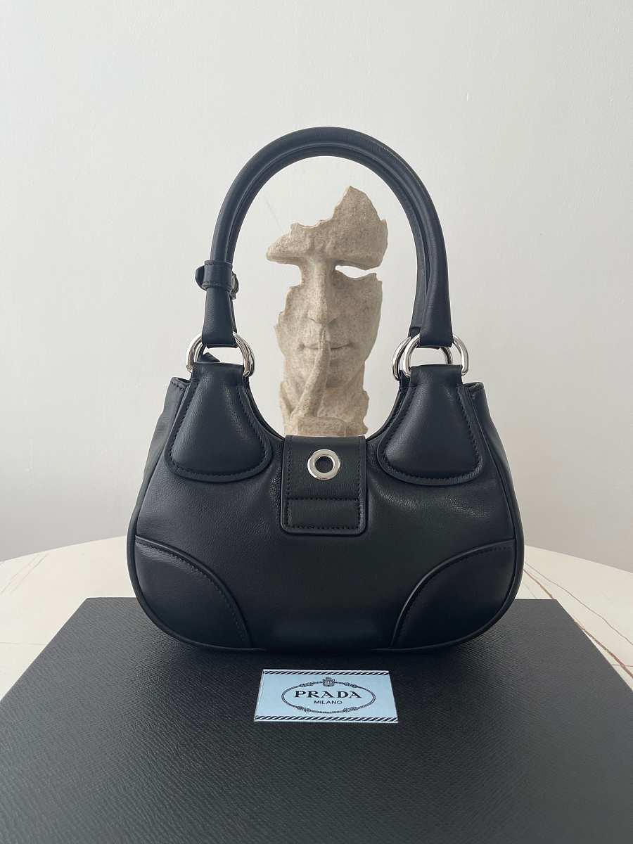 Prada Moon Re-Nylon Leather Bag Black Size 23x13x9 cm