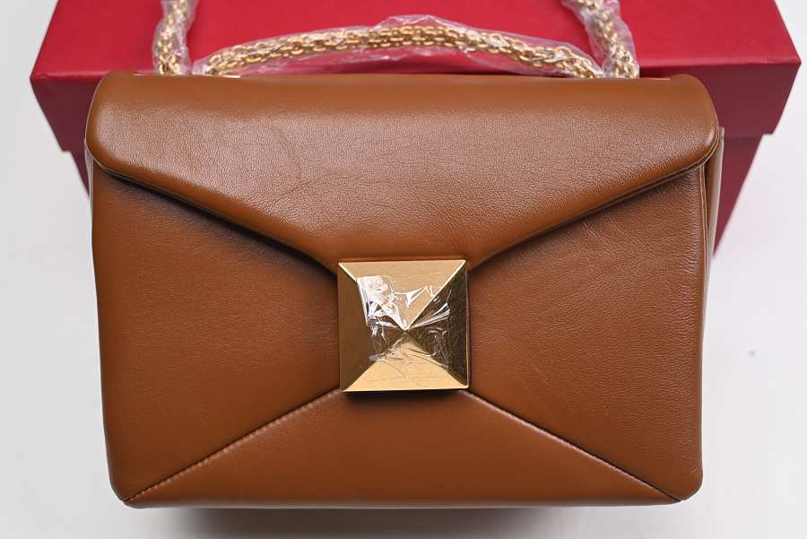 VALENTINO ONE STUD NAPPA BAG WITH CHAIN ORANGE